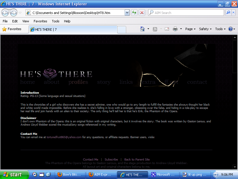 Anyway, this logo will contribute to the design of the next He's There layout (not that I have plans to start it yet), and the "movie poster" which I need to make and already have a sketch and ideas for. It's funny, but the design for it was partly inspired by No Doubt's End It On This, the future movie's ending credits song. lol... [/nerd] At the 3:02 mark approximately, I picture the reveal of the logo followed by theater dates, like in a trailer, and then at 3:15 when it picks back up, clips of climax parts, namely the Phantom riding on the chandelier as it falls in sort of slow motion, with the camera hovering over him clockwise for about half a circle. (I have no idea where that came from. He isn't planned to do it in the book. ...yet?)
